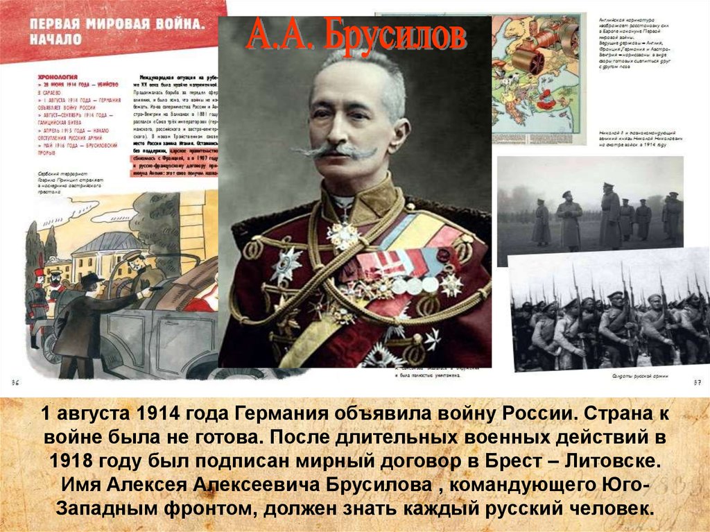 Имя Алексея Алексеевича Брусилова , командующего ЮгоЗападным фронтом, должен знать каждый русский человек.