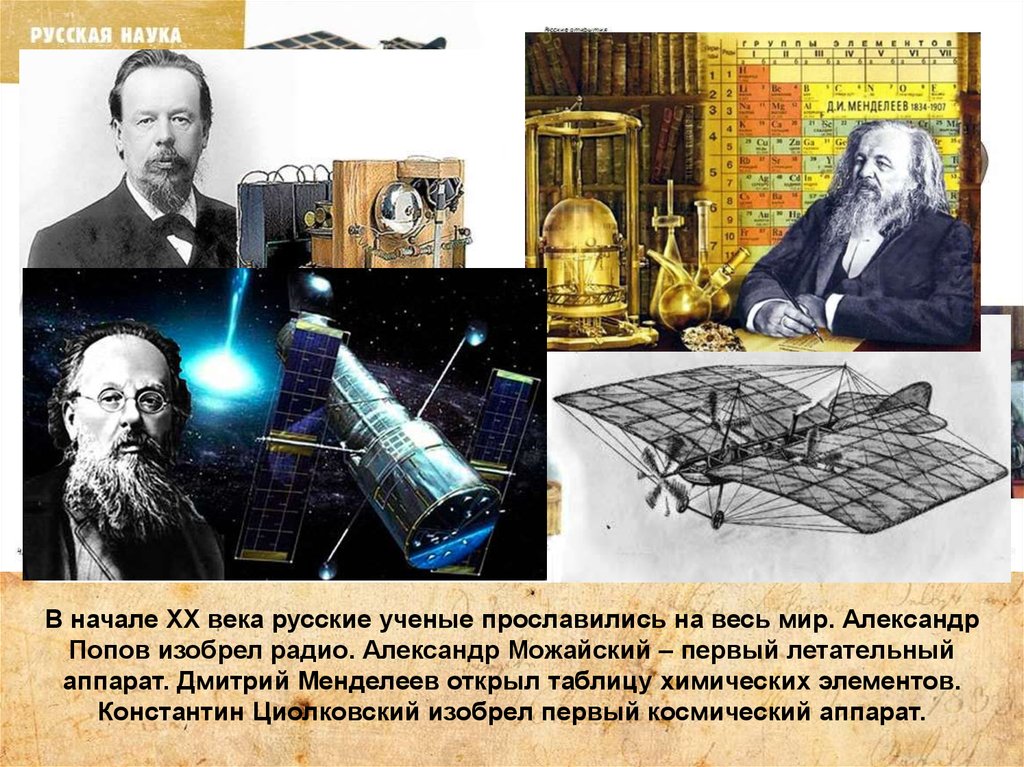 В начале ХХ века русские ученые прославились на весь мир. АлександрПопов изобрел радио. Александр Можайский – первый летательный