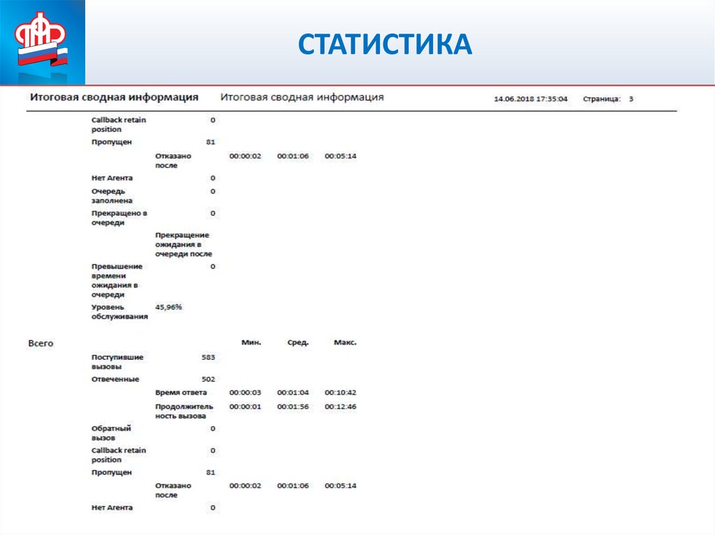 эксплуатацию «Контактцентра ГУ-ОПФР по