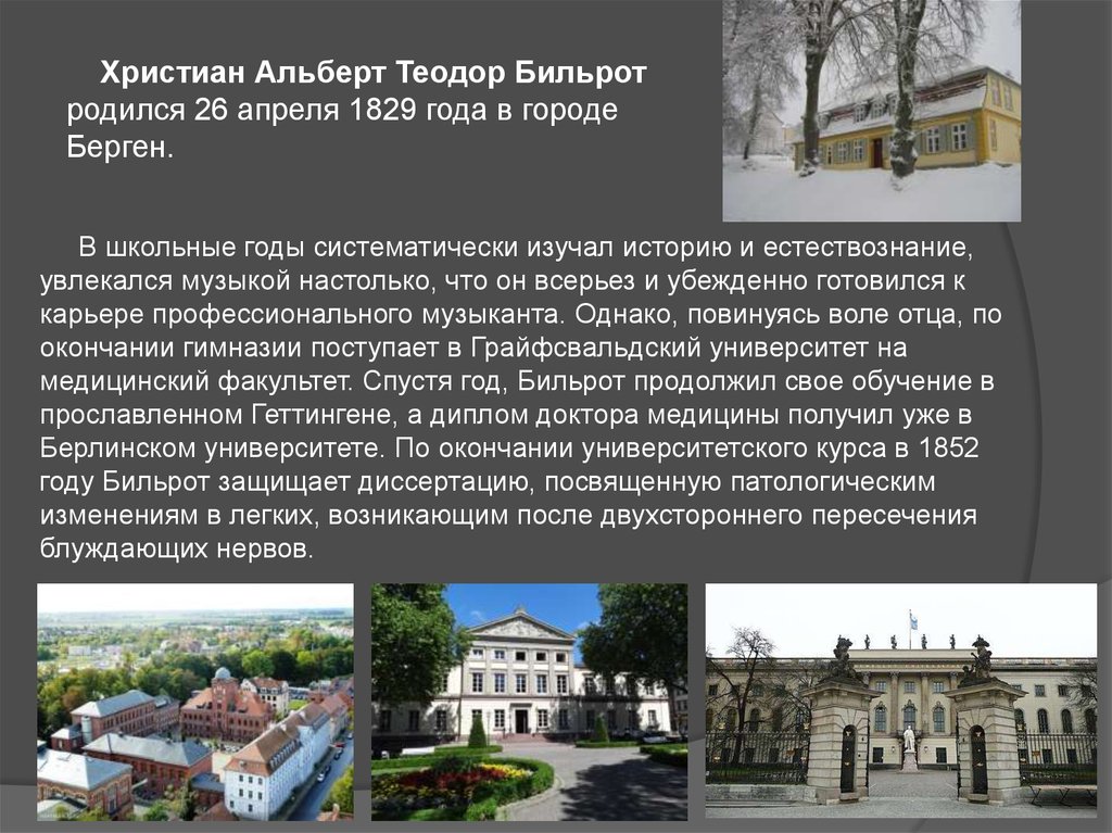 Христиан Альберт Теодор Бильротродился 26 апреля 1829 года в городе