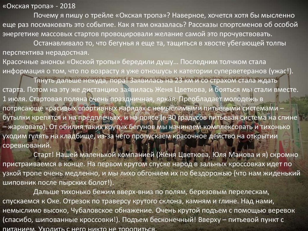 «Окская тропа» - 2018Почему я пишу о трейле «Окская тропа»? Наверное, хочется хотя бы мысленно