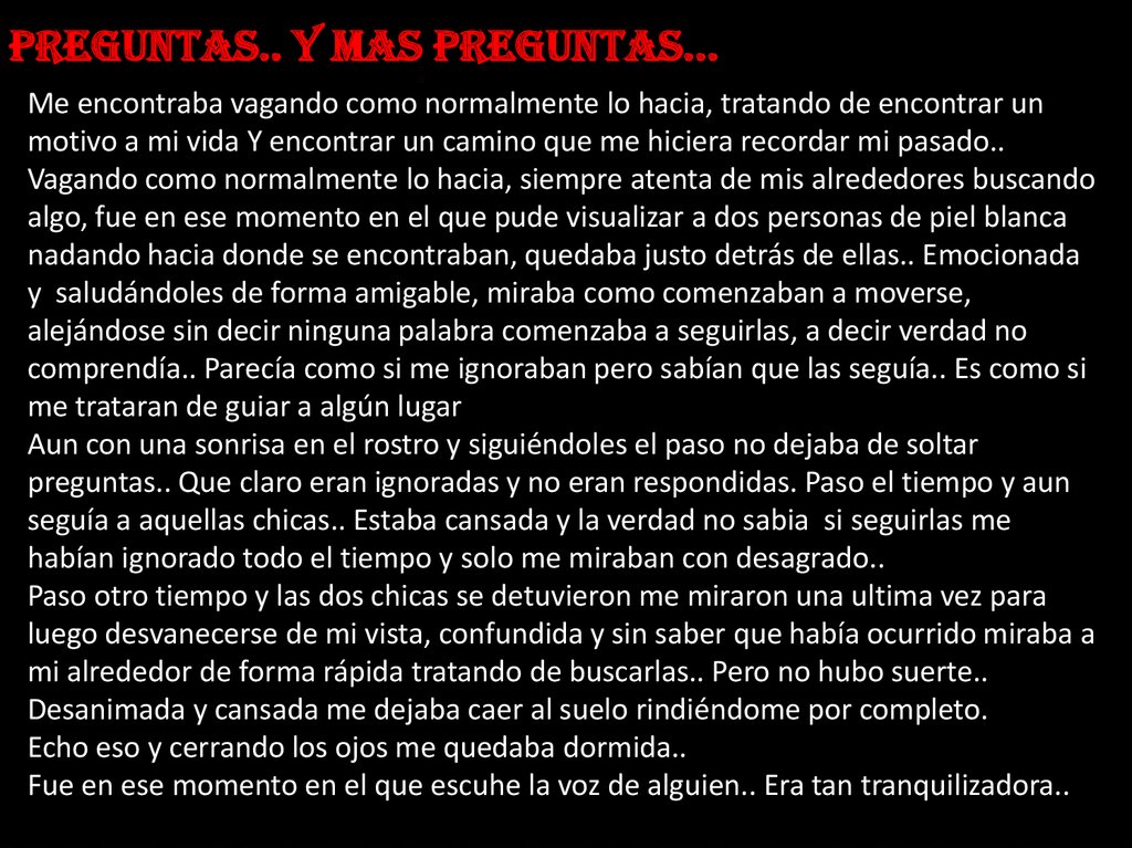 Preguntas.. Y mas Preguntas…Me encontraba vagando como normalmente lo hacia, tratando de encontrar un
