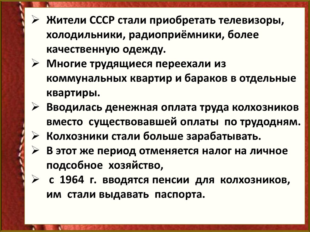 Жители СССР стали приобретать телевизоры,холодильники, радиоприёмники, более