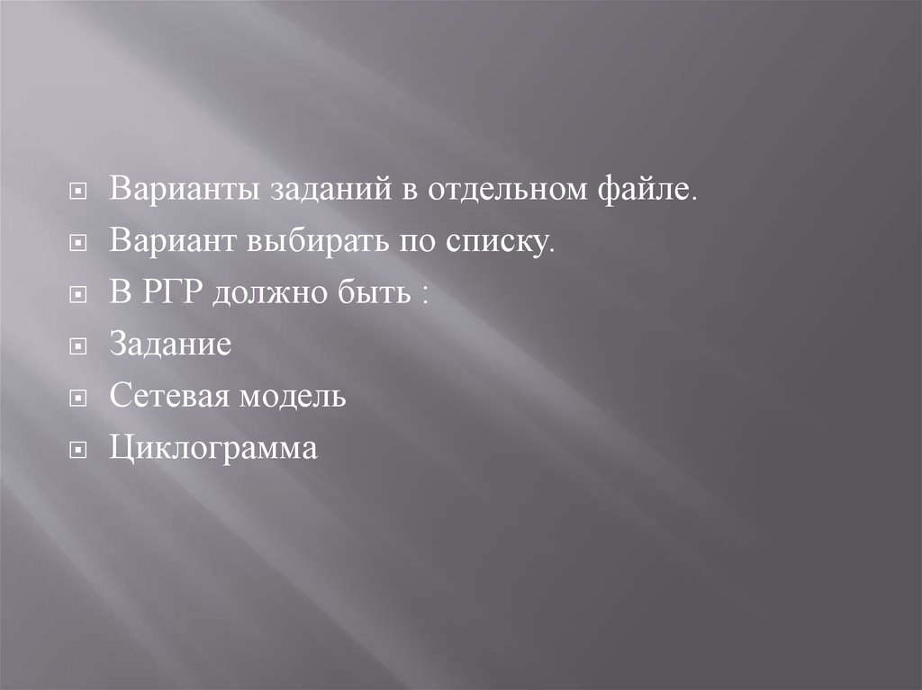 Варианты заданий в отдельном файле.Вариант выбирать по списку.