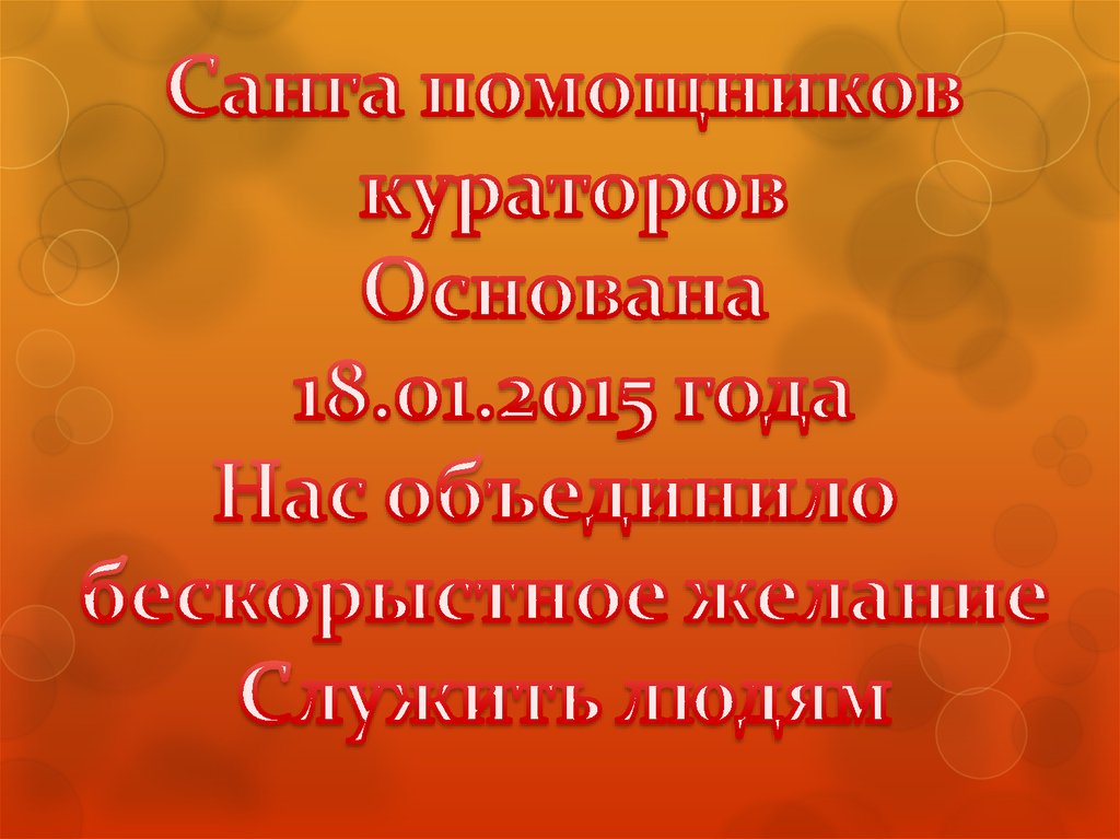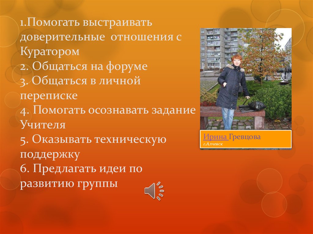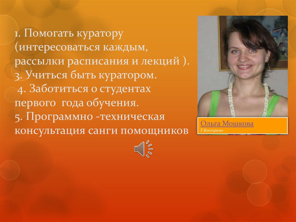 1. Помощь куратору в организацииновой группы и взаимодействии с