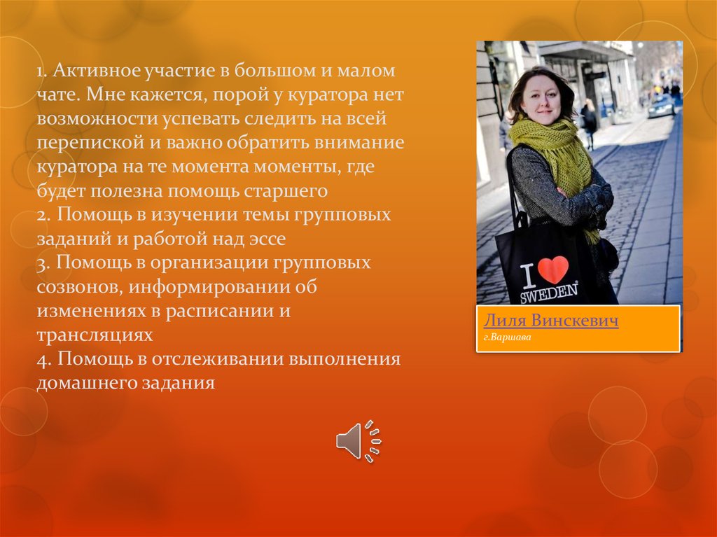 Как я могу быть полезной - будуделать все, что делает куратор в