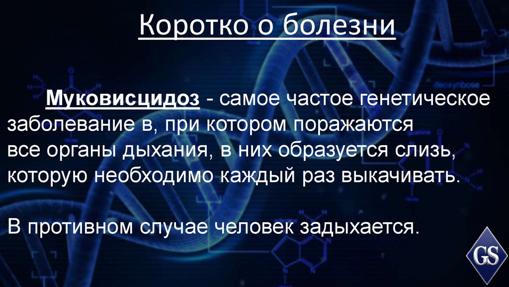 Коротко о болезниМуковисцидоз - самое частое генетическое