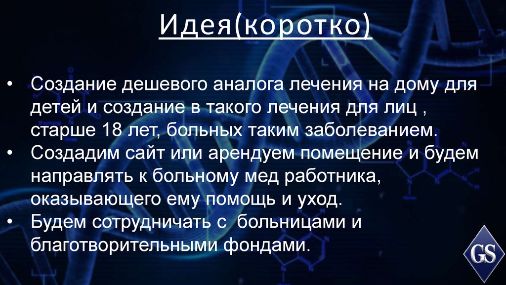 Идея(коротко)• Создание дешевого аналога лечения на дому для