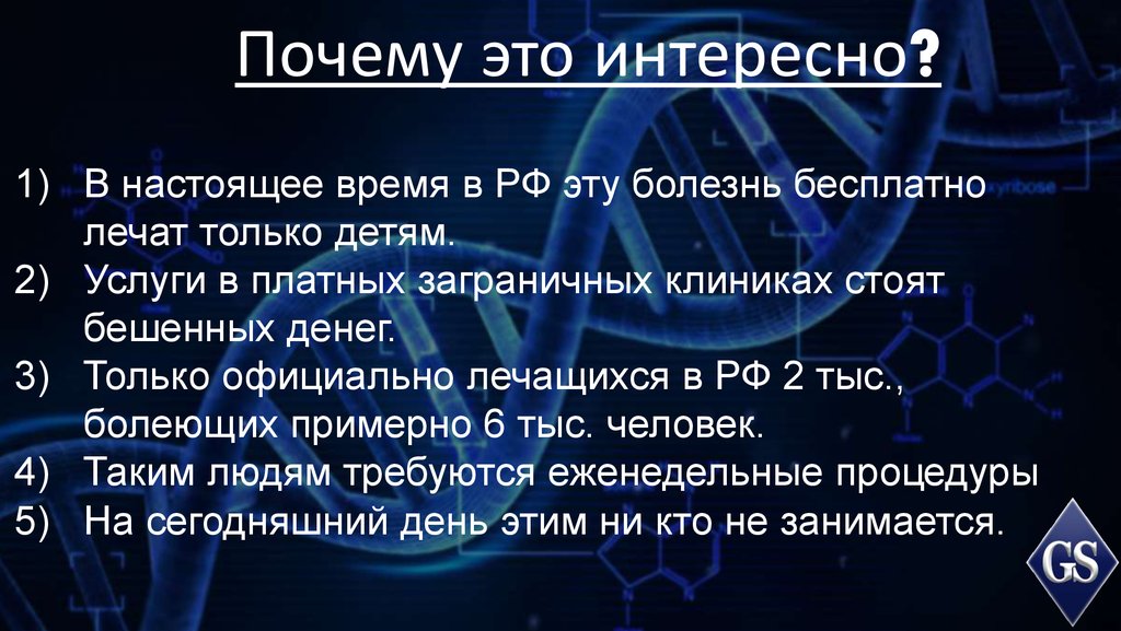 Почему это интересно?1) В настоящее время в РФ эту болезнь бесплатно