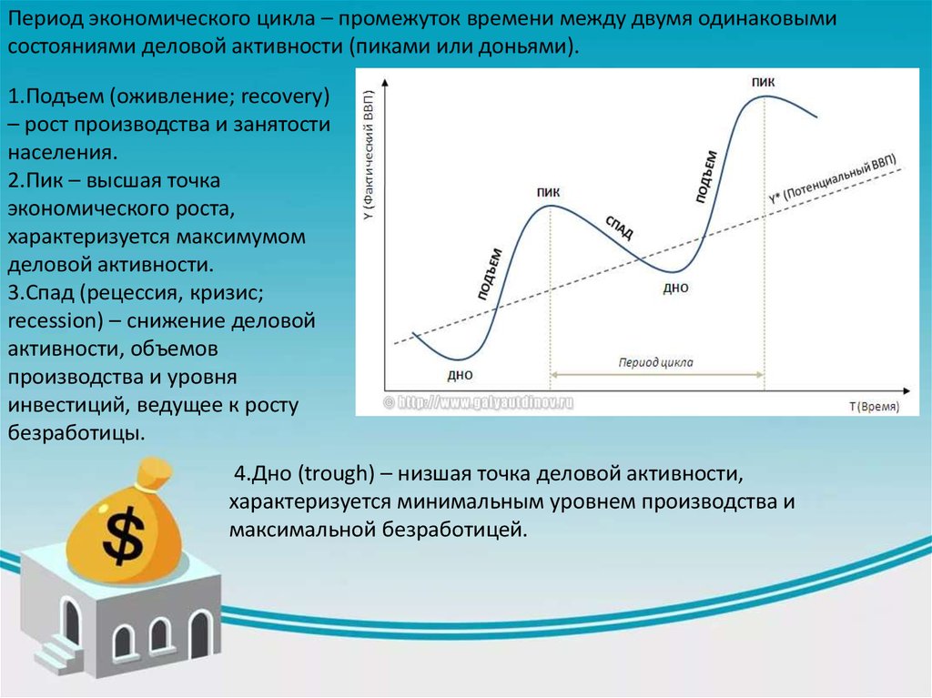 Период экономического цикла – промежуток времени между двумя одинаковымисостояниями деловой активности (пиками или доньями).