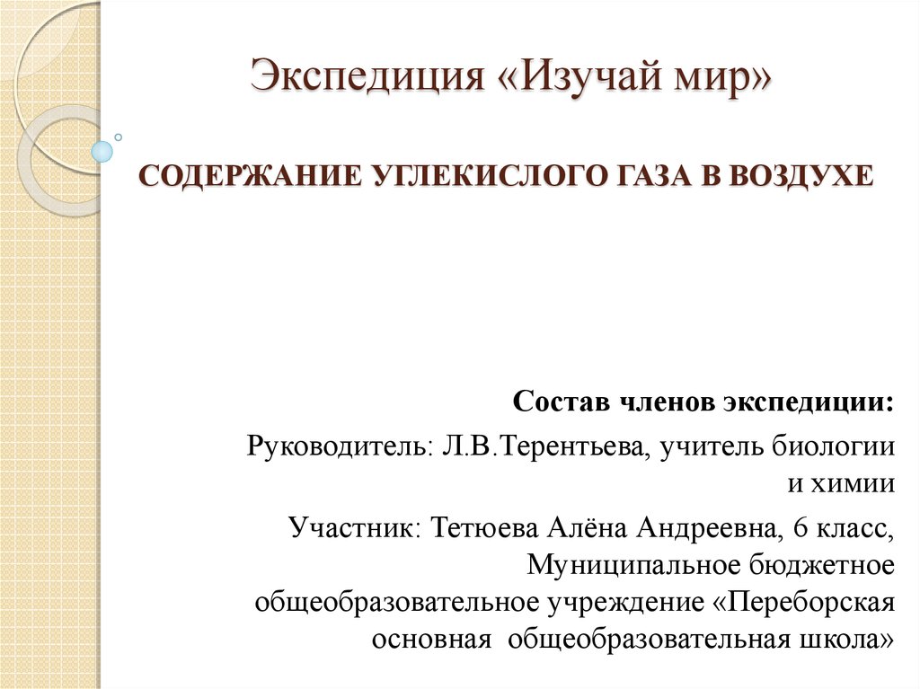 Экспедиция «Изучай мир». Содержание углекислого газа в воздухе