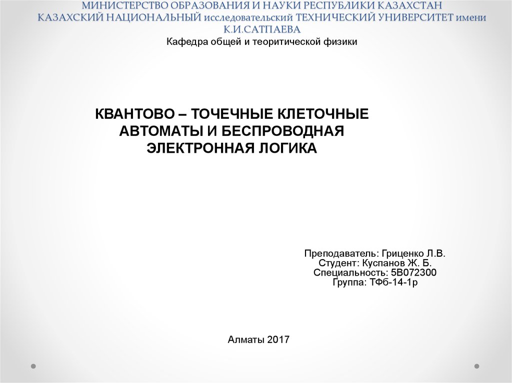 К.И.САТПАЕВАКафедра общей и теоритической физики