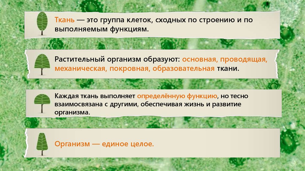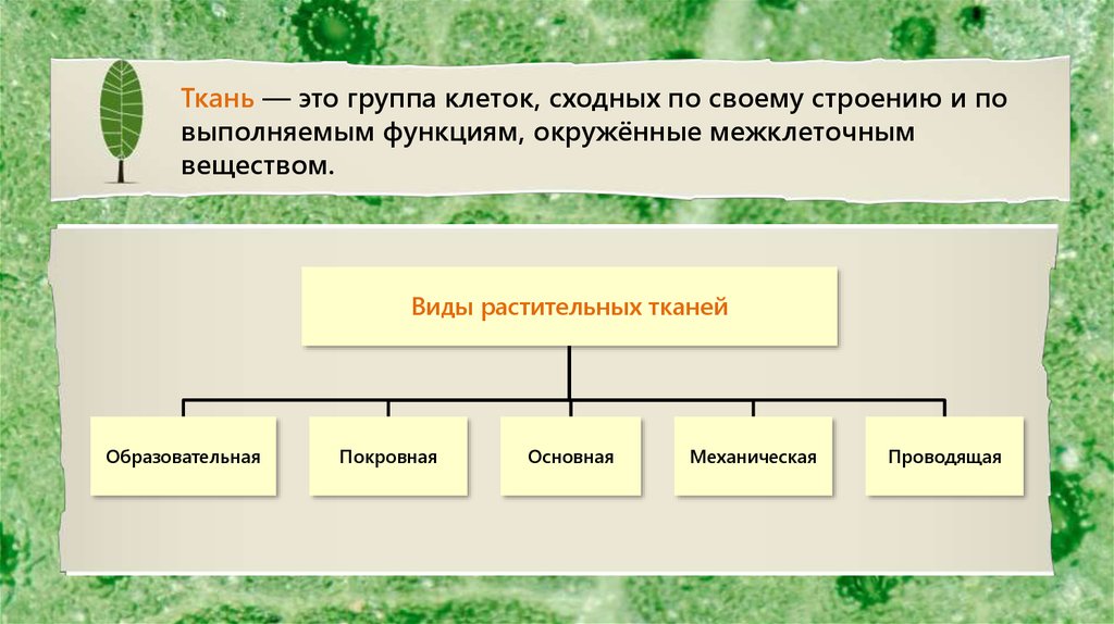 Ткань — это группа клеток, сходных по своему строению и повыполняемым функциям, окружённые межклеточным