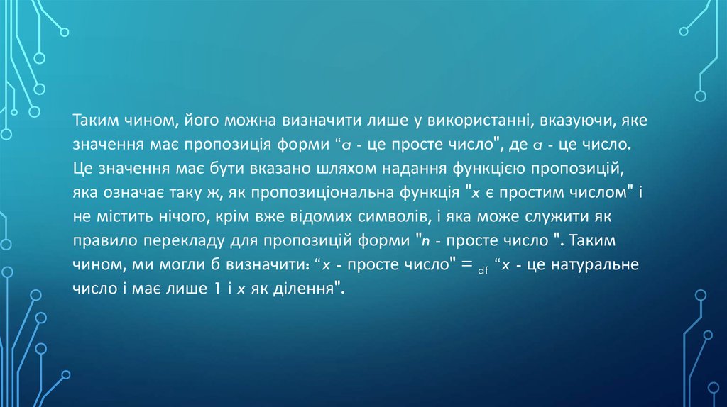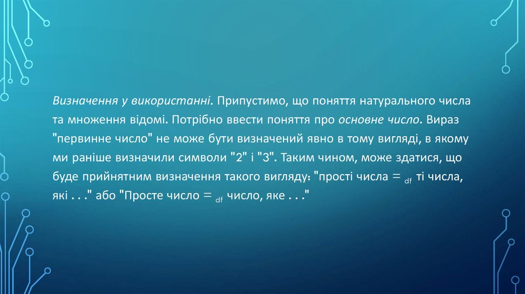 чином, ми могли б визначити: “x - просте число" = df “x - це натуральне