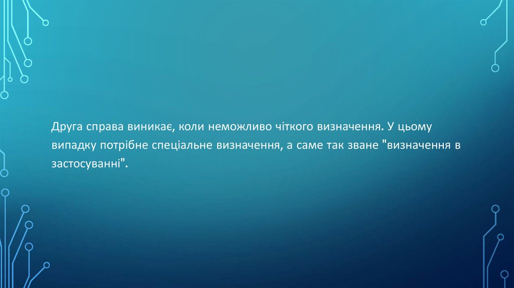 Друга справа виникає, коли неможливо чіткого визначення. У цьомувипадку потрібне спеціальне визначення, а саме так зване "визначення в