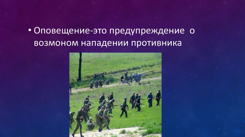 • - об yгpозе нападения противника;• о приведении в различные степени готовности системы