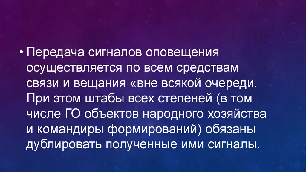 • Передача сигналов оповещенияосуществляется по всем средствам