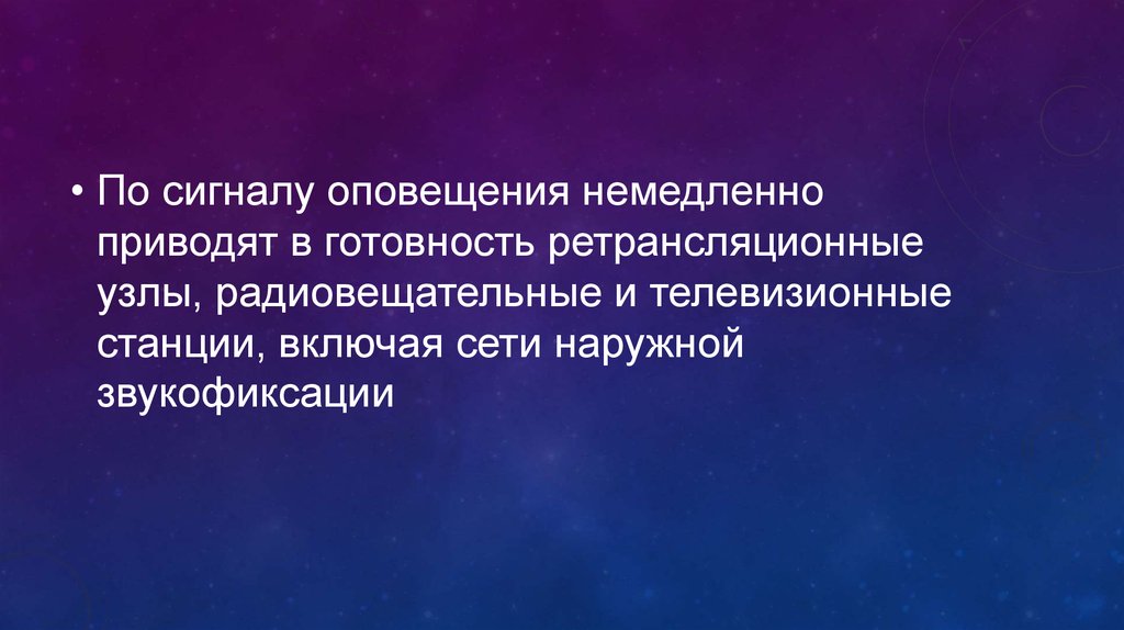 • По сигналу оповещения немедленноприводят в готовность ретрансляционные
