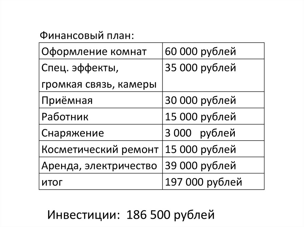 Финансовый план:Оформление комнат