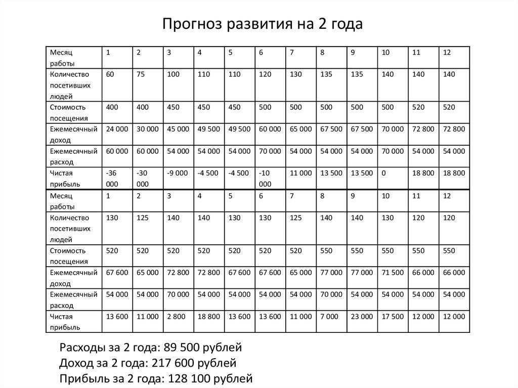 Прогноз развития на 2 годаМесяц