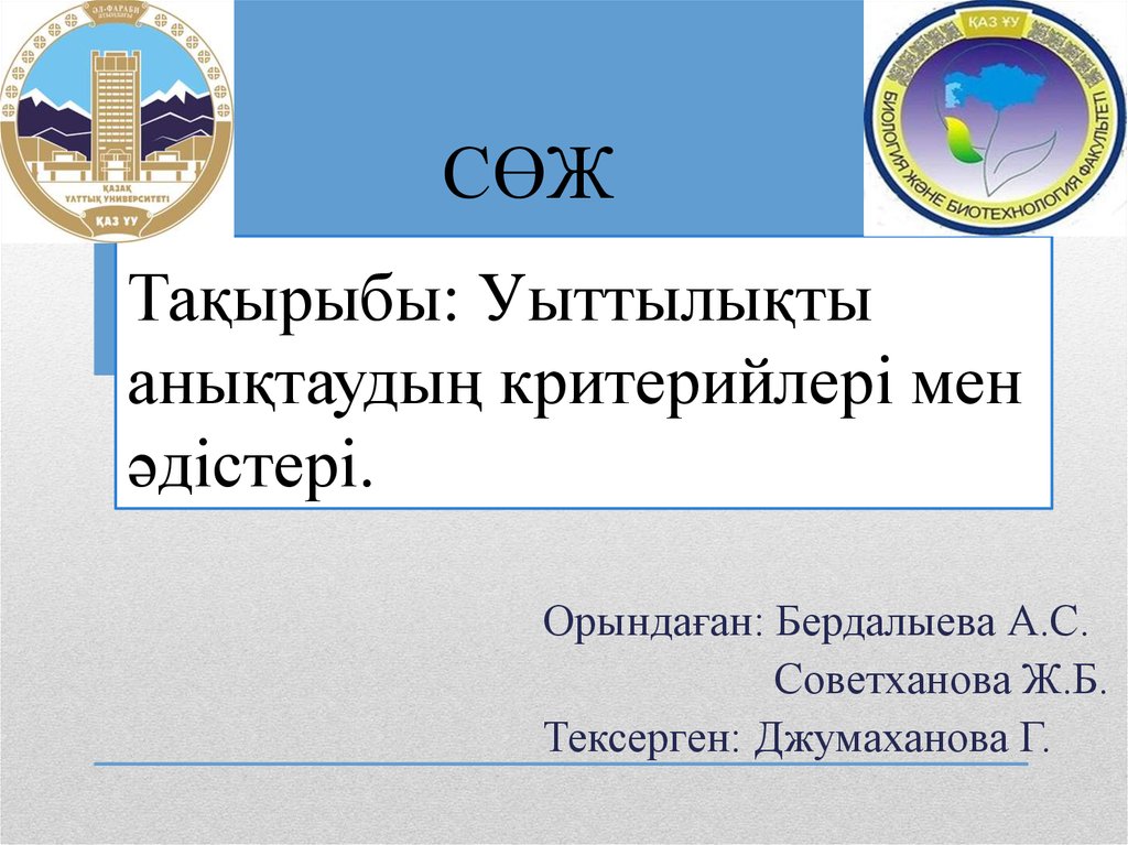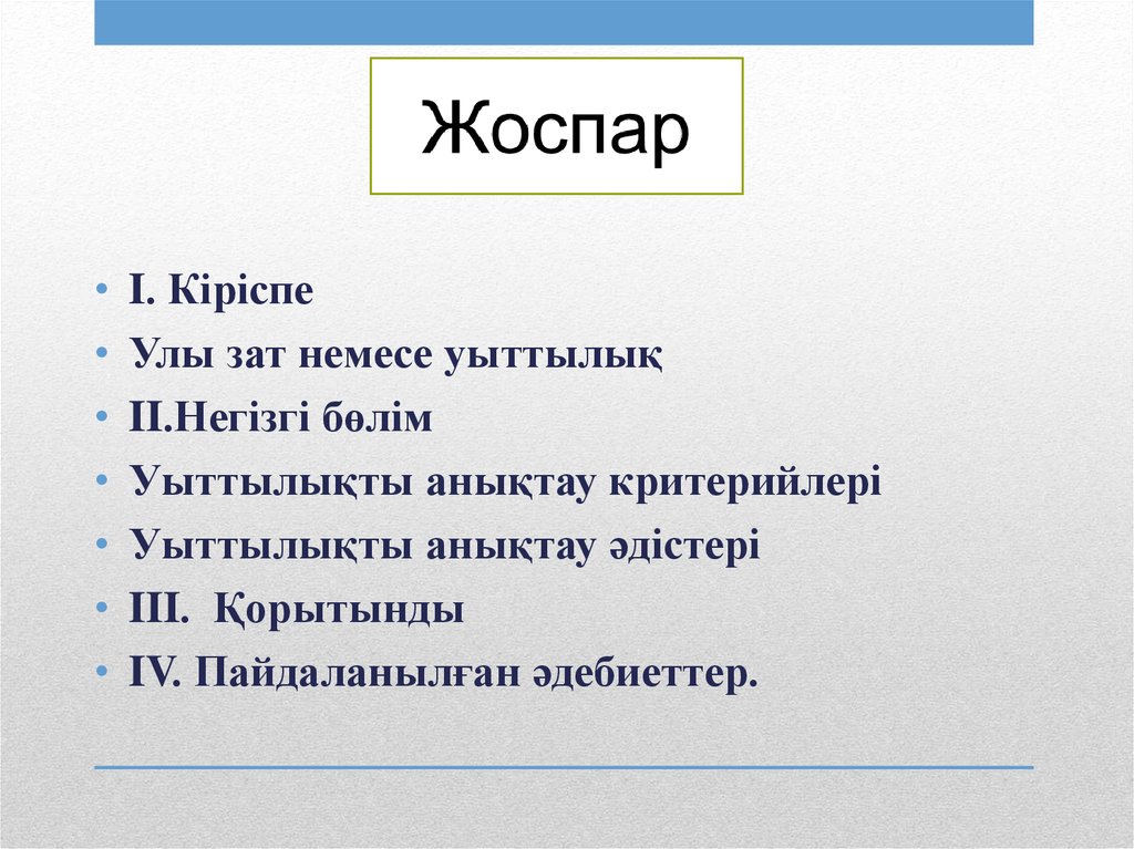 1. Тақырыбы: Уыттылықты анықтаудың критерийлері мен әдістері.