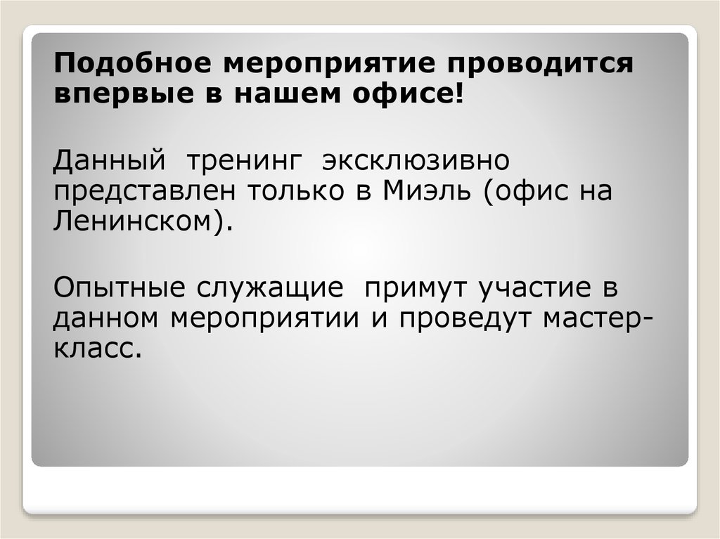 Подобное мероприятие проводитсявпервые в нашем офисе!