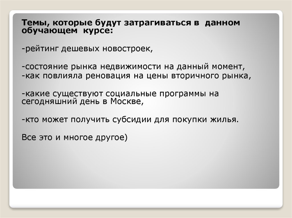 Темы, которые будут затрагиваться в данномобучающем курсе: