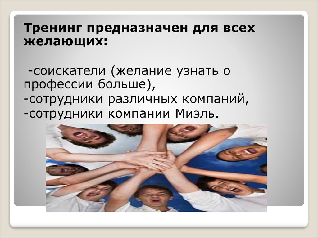 Тренинг предназначен для всехжелающих: