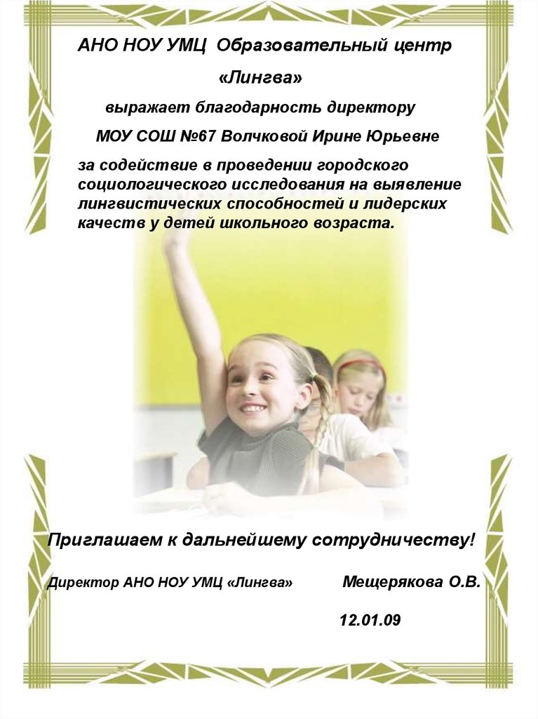 Директор АНО НОУ УМЦ «Лингва»