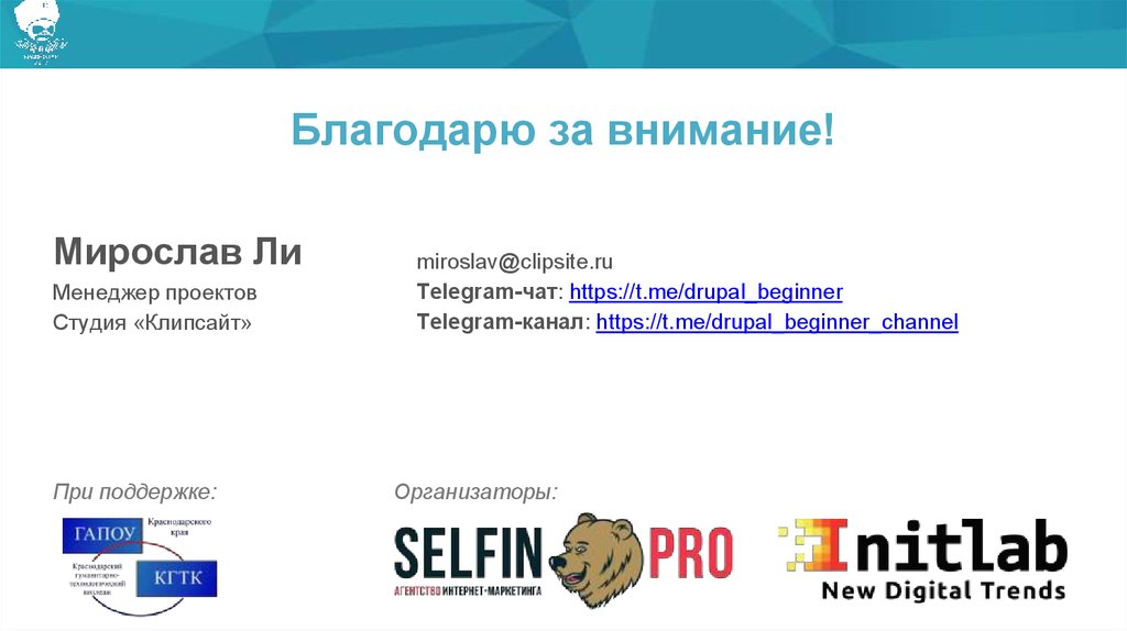 Telegram-чат: https://t.me/drupal_beginner
