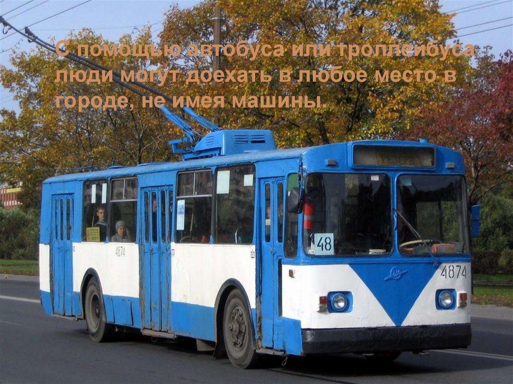 С помощью автобуса или троллейбусалюди могут доехать в любое место в