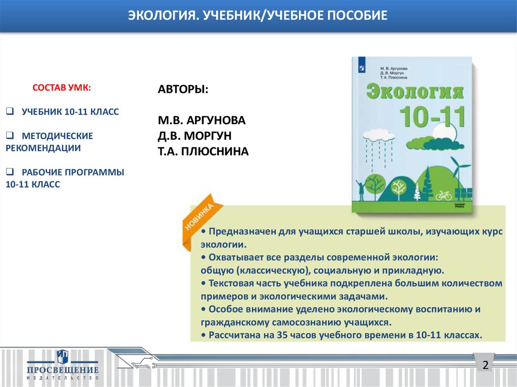 ЭКОЛОГИЯ. УЧЕБНИК/УЧЕБНОЕ ПОСОБИЕСОСТАВ УМК: