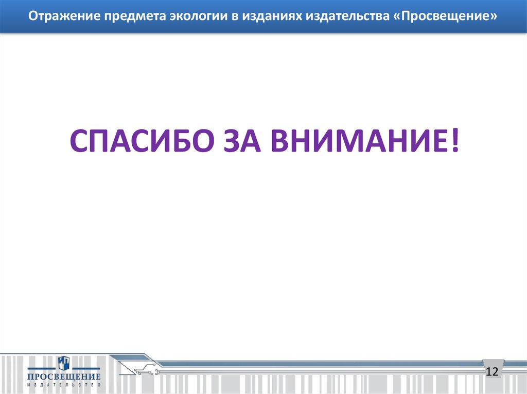 Отражение предмета экологии в изданиях издательства «Просвещение»СПАСИБО ЗА ВНИМАНИЕ!