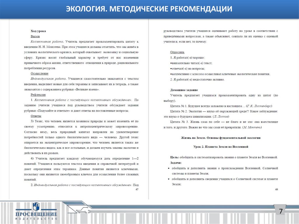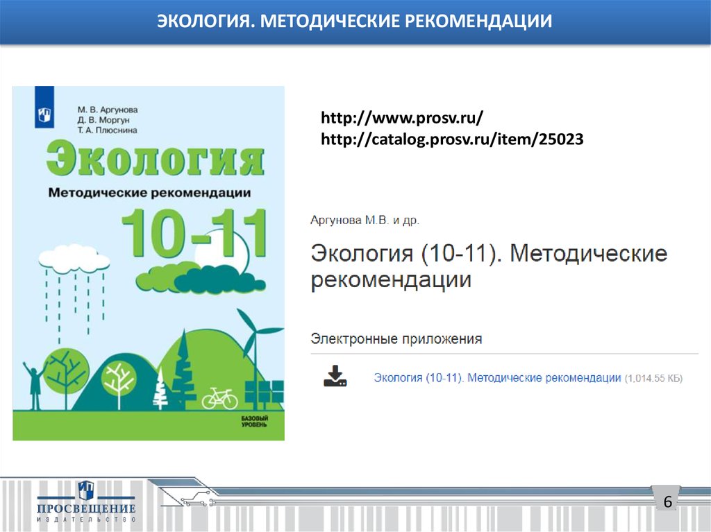 ЭКОЛОГИЯ. МЕТОДИЧЕСКИЕ РЕКОМЕНДАЦИИhttp://www.prosv.ru/