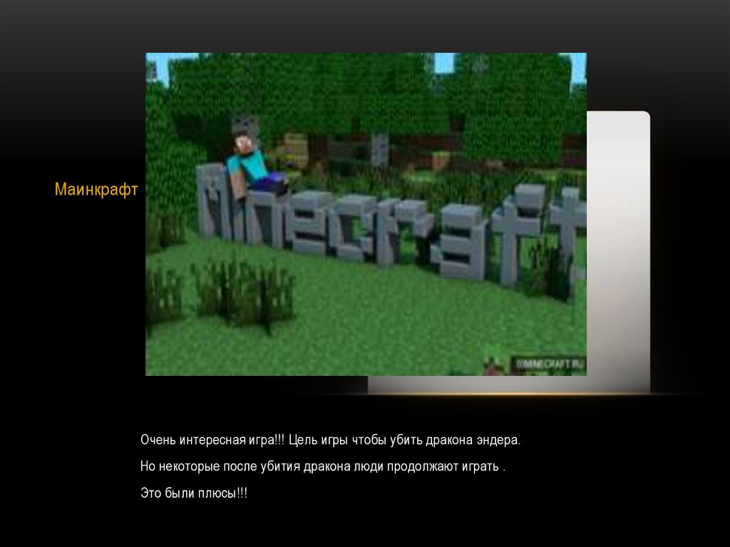 МаинкрафтОчень интересная игра!!! Цель игры чтобы убить дракона эндера.