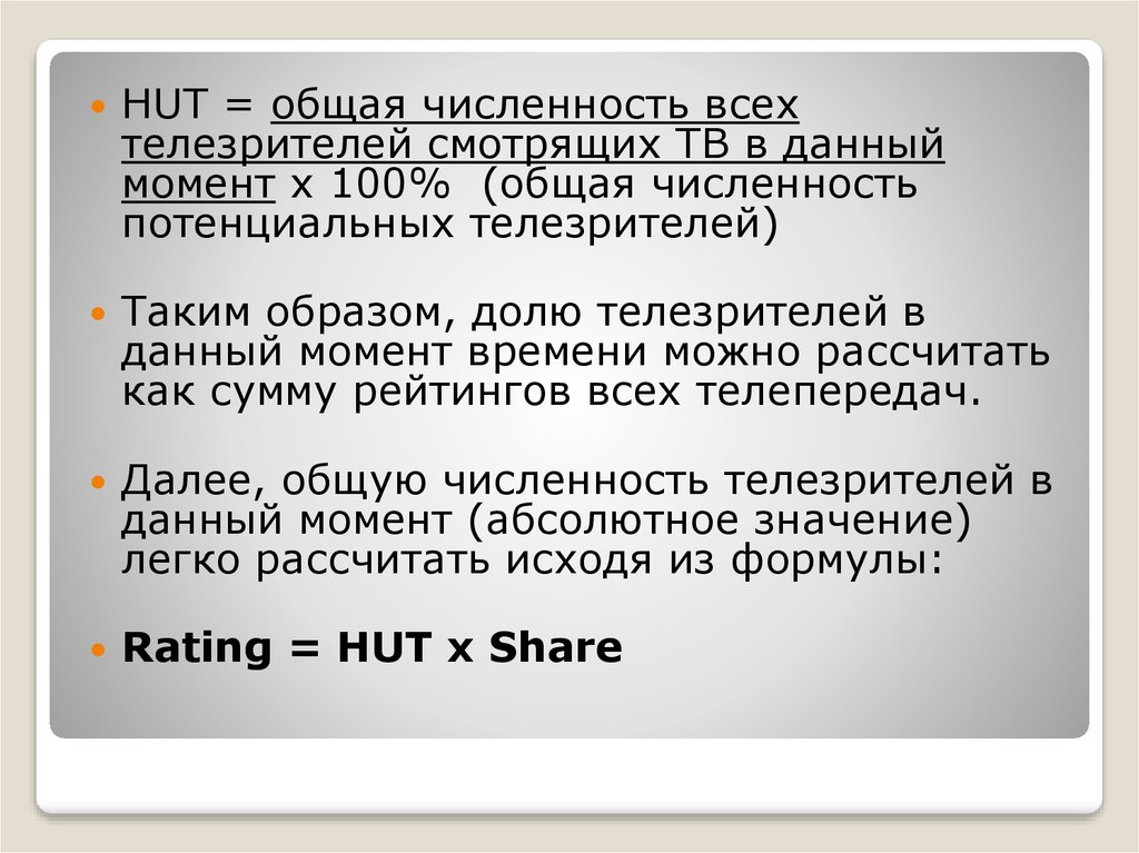 HUT = общая численность всехтелезрителей смотрящих ТВ в данный