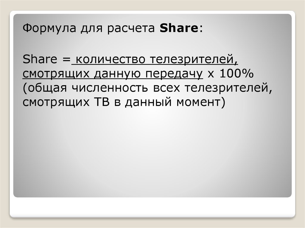 Формула для расчета Share:Share = количество телезрителей,