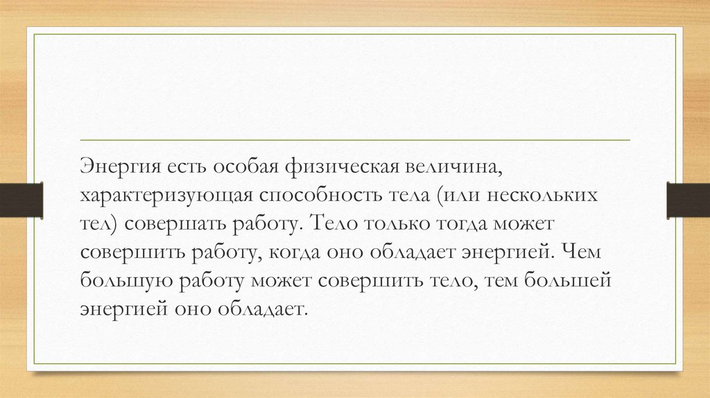 тел) совершать работу. Тело только тогда может