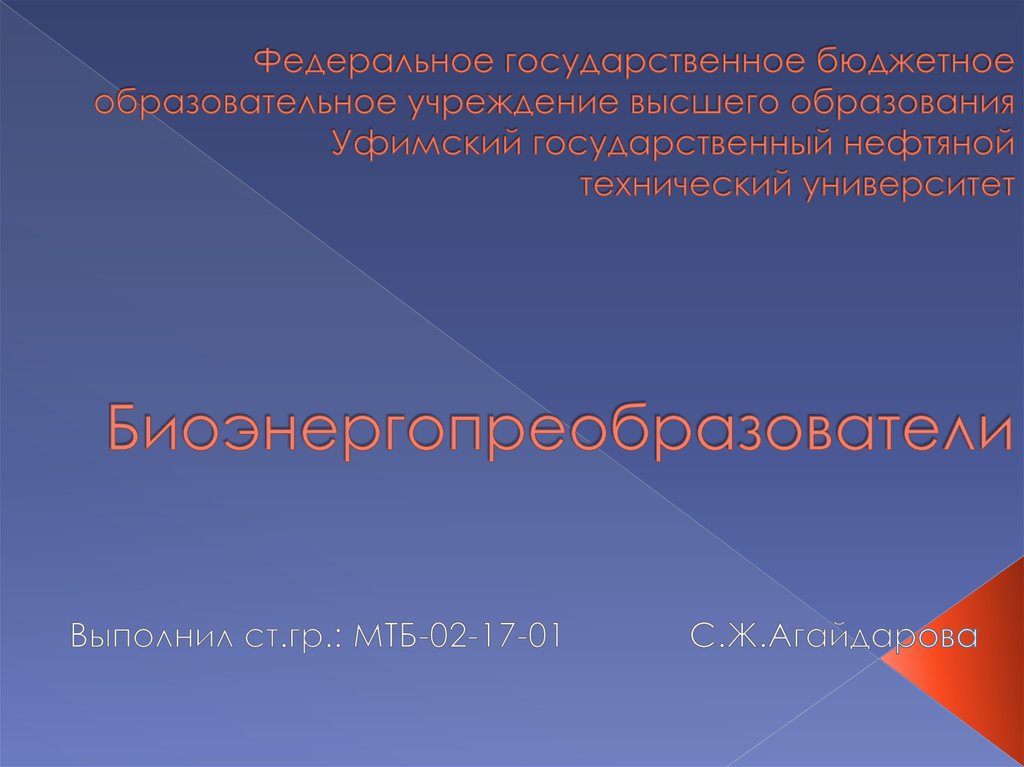 1. Федеральное государственное бюджетное образовательное учреждение высшего образования Уфимский государственный нефтяной
