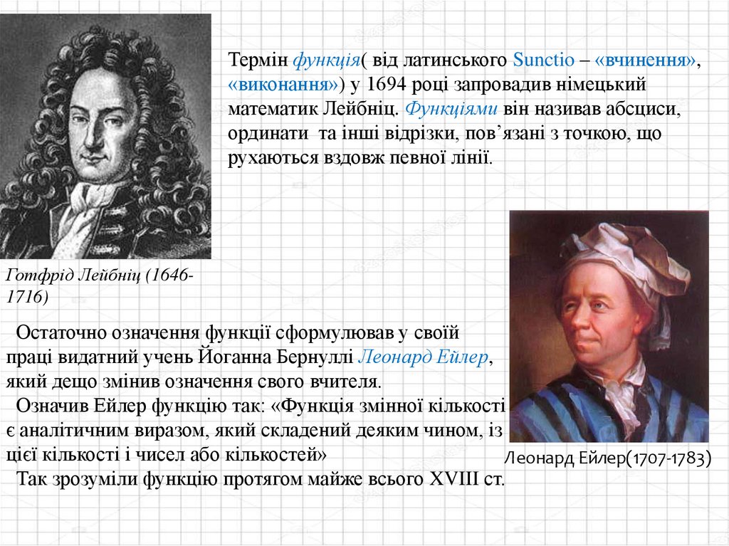 математик Лейбніц. Функціями він називав абсциси,
