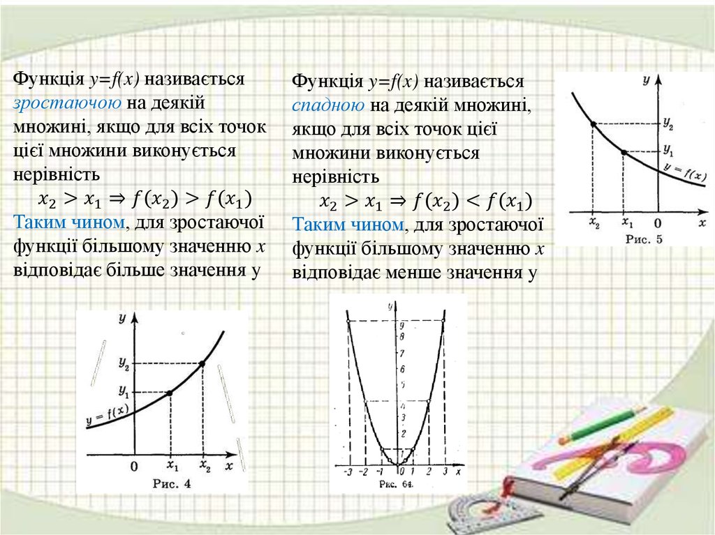Функція y=f(x) називаєтьсязростаючою на деякій