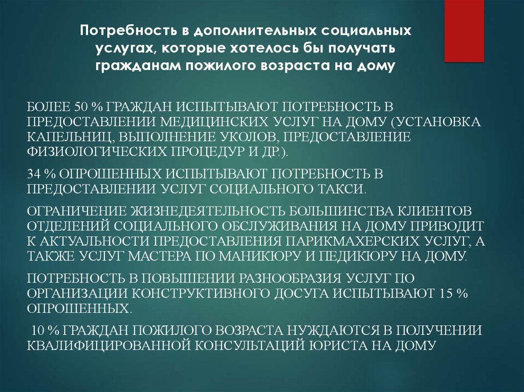 Потребность в дополнительных социальных услугах, для граждан пожилого возраста на дому