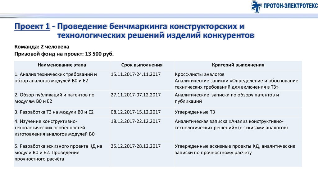 Проект 1 - Проведение бенчмаркинга конструкторских итехнологических решений изделий конкурентов
