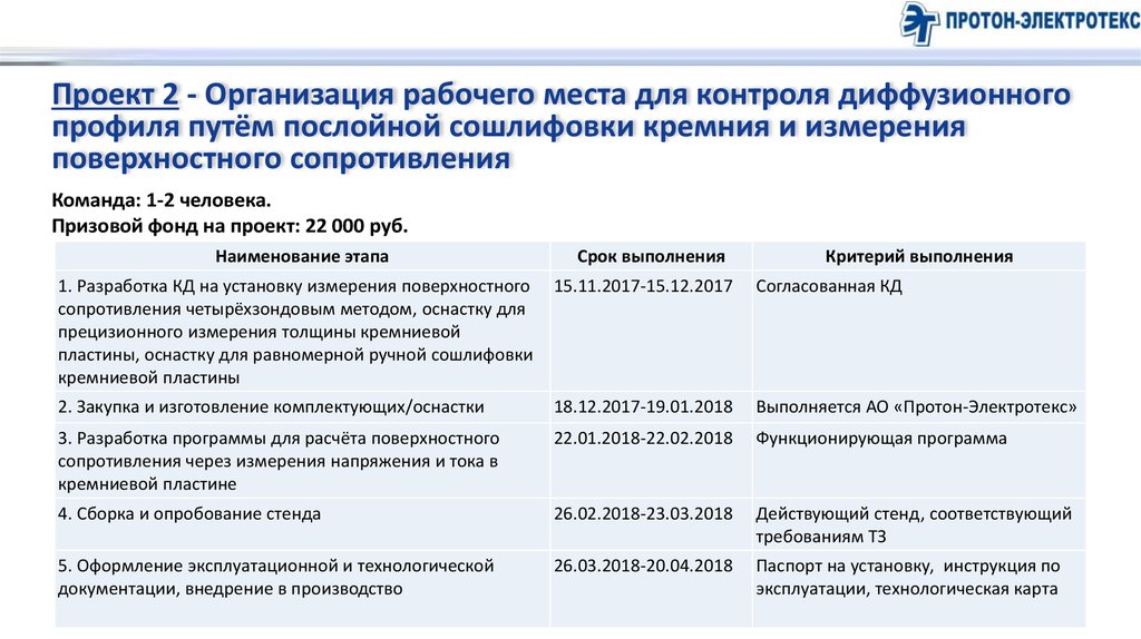 Проект 2 - Организация рабочего места для контроля диффузионногопрофиля путём послойной сошлифовки кремния и измерения