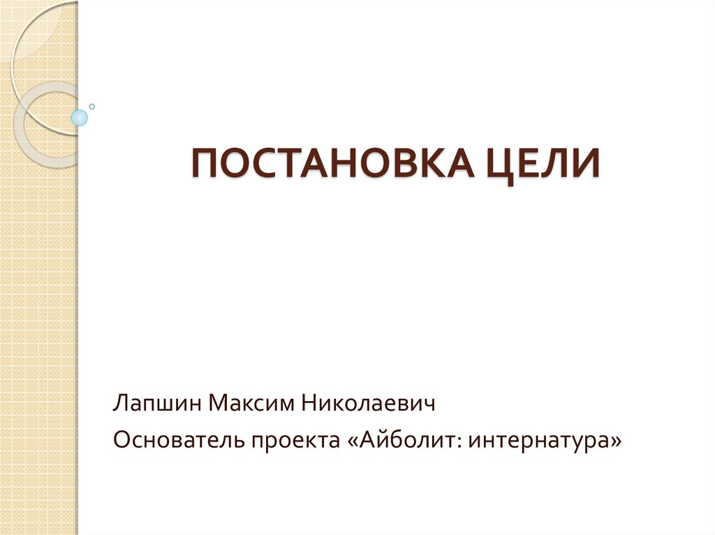 ПОСТАНОВКА ЦЕЛИЛапшин Максим Николаевич