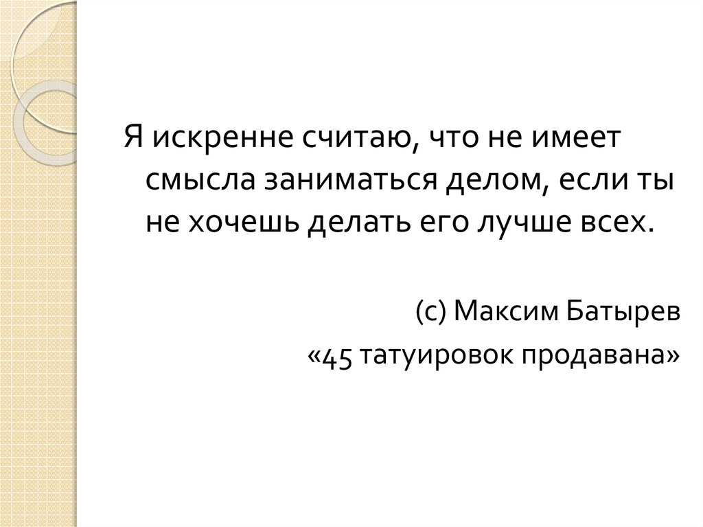 Я искренне считаю, что не имеетсмысла заниматься делом, если ты