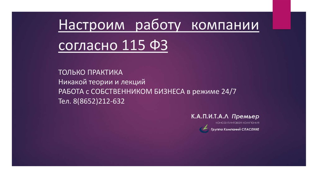 К.А.П.И.Т.А.Л Премьер консалтинговая компания. Группа Компаний СПАСЕНИЕ