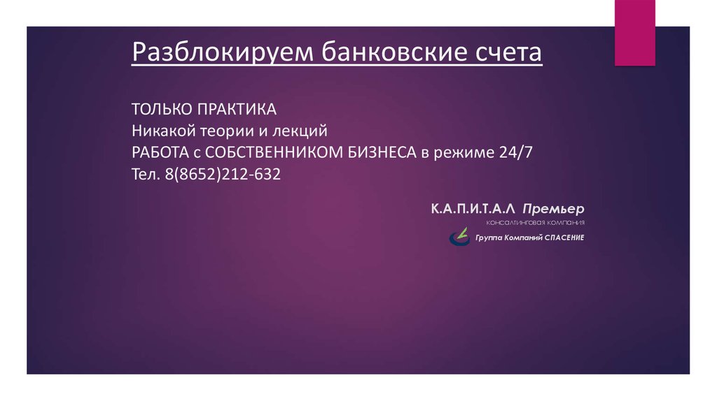 Разблокируем банковские счетаТОЛЬКО ПРАКТИКА