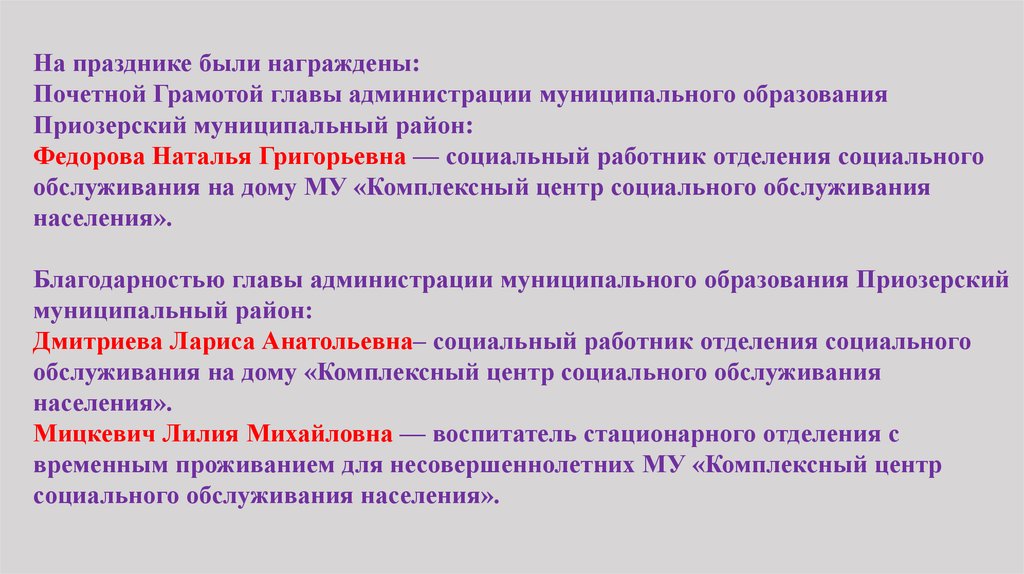 поздравлениями социальных работников порадовали лучшие Приозерские