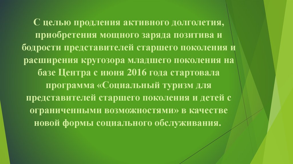 С целью продления активного долголетия,приобретения мощного заряда позитива и